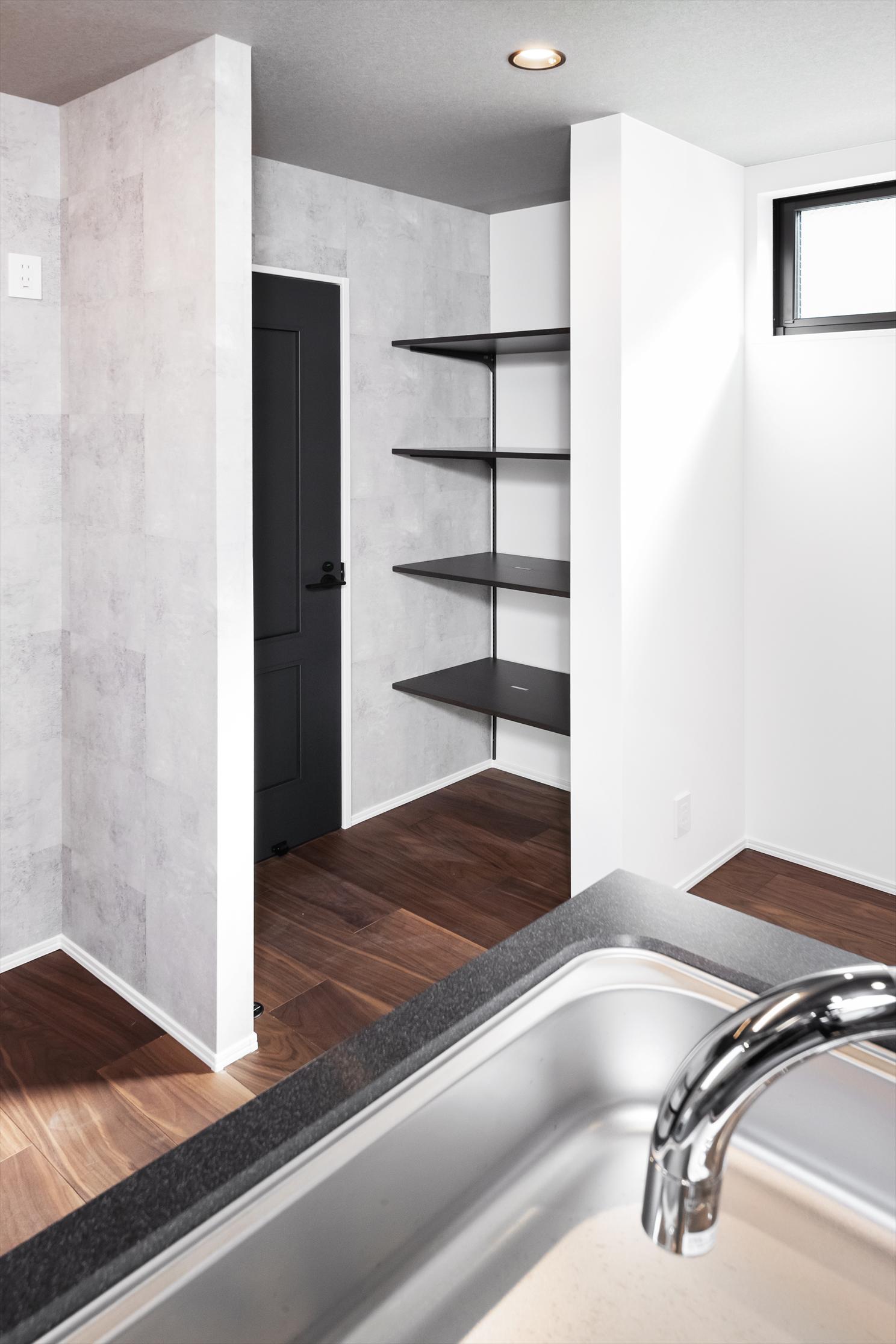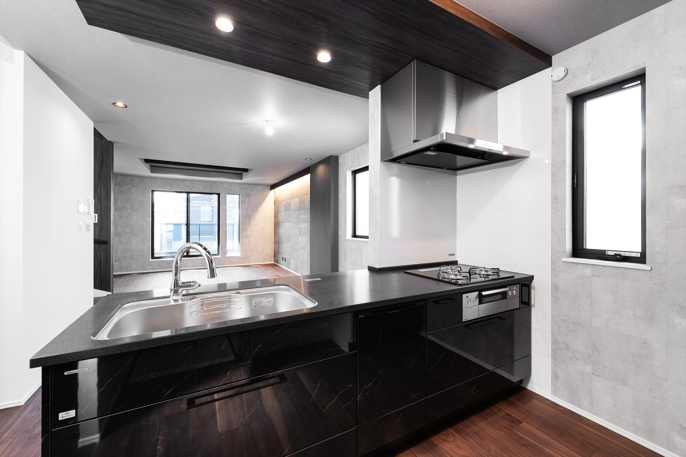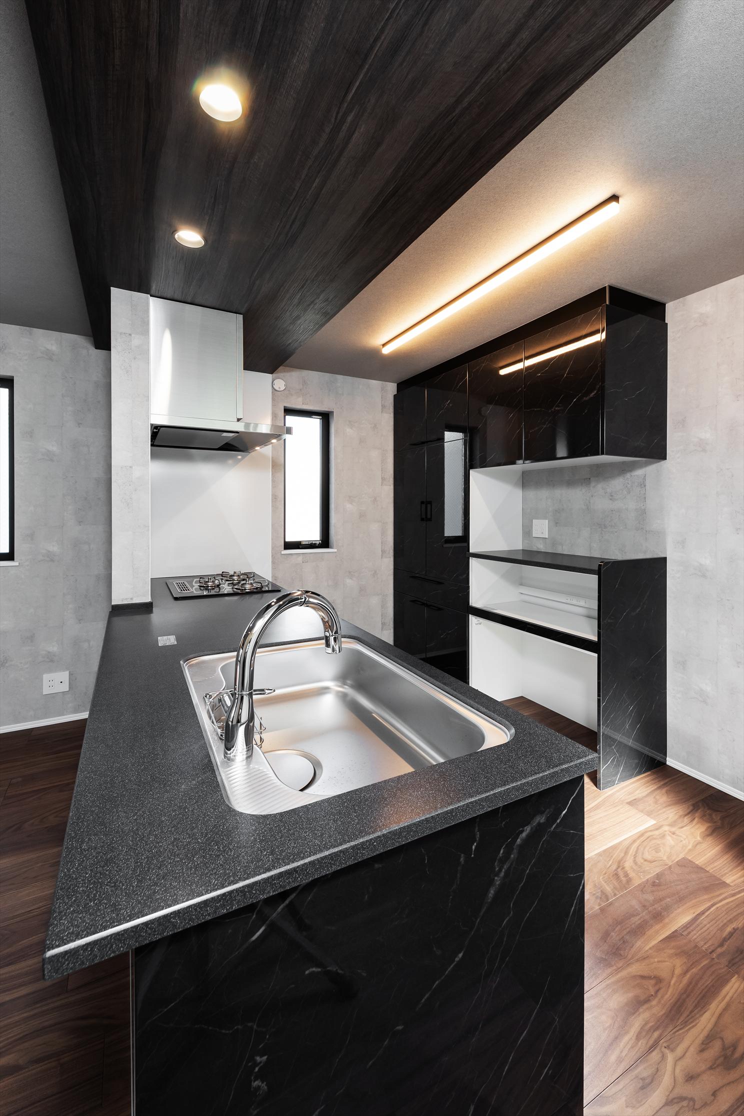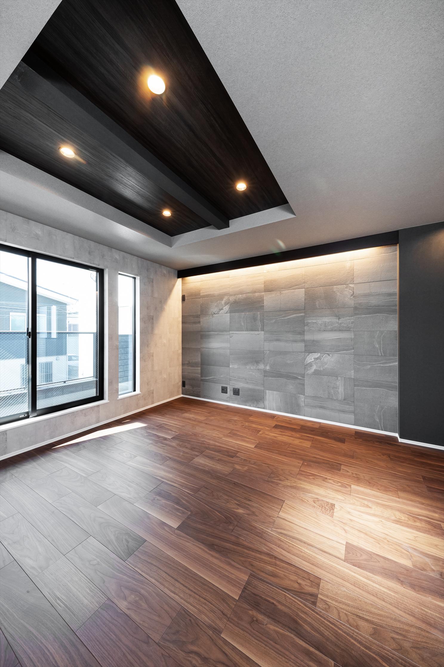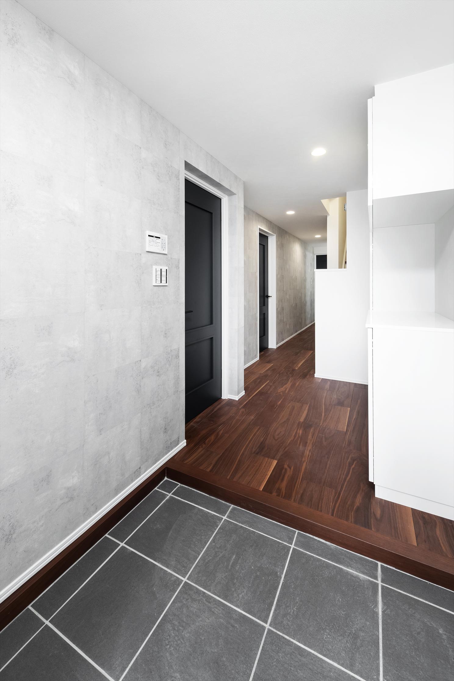 石目調の質感とダークウッドが引き立て合う格調高いモダン空間